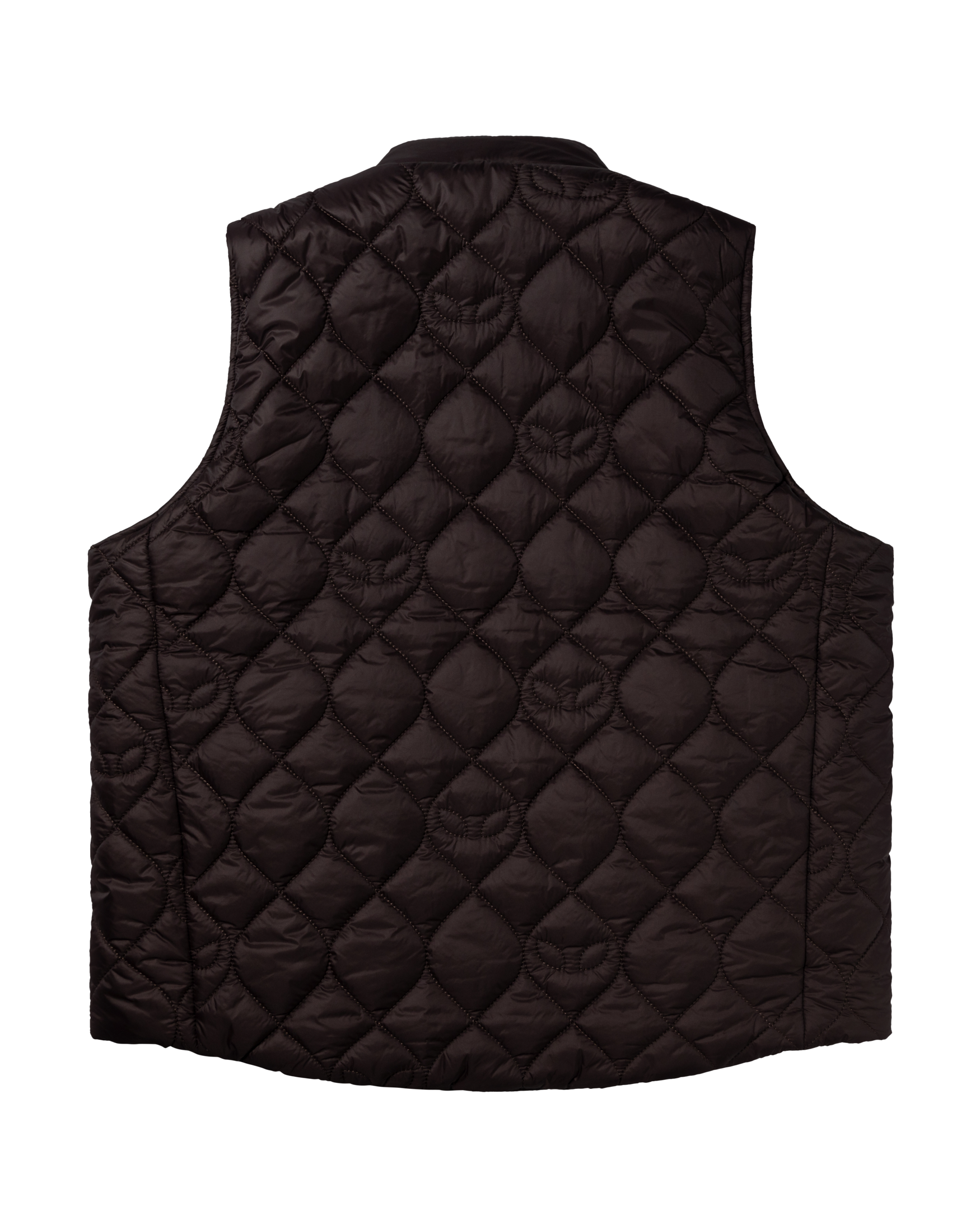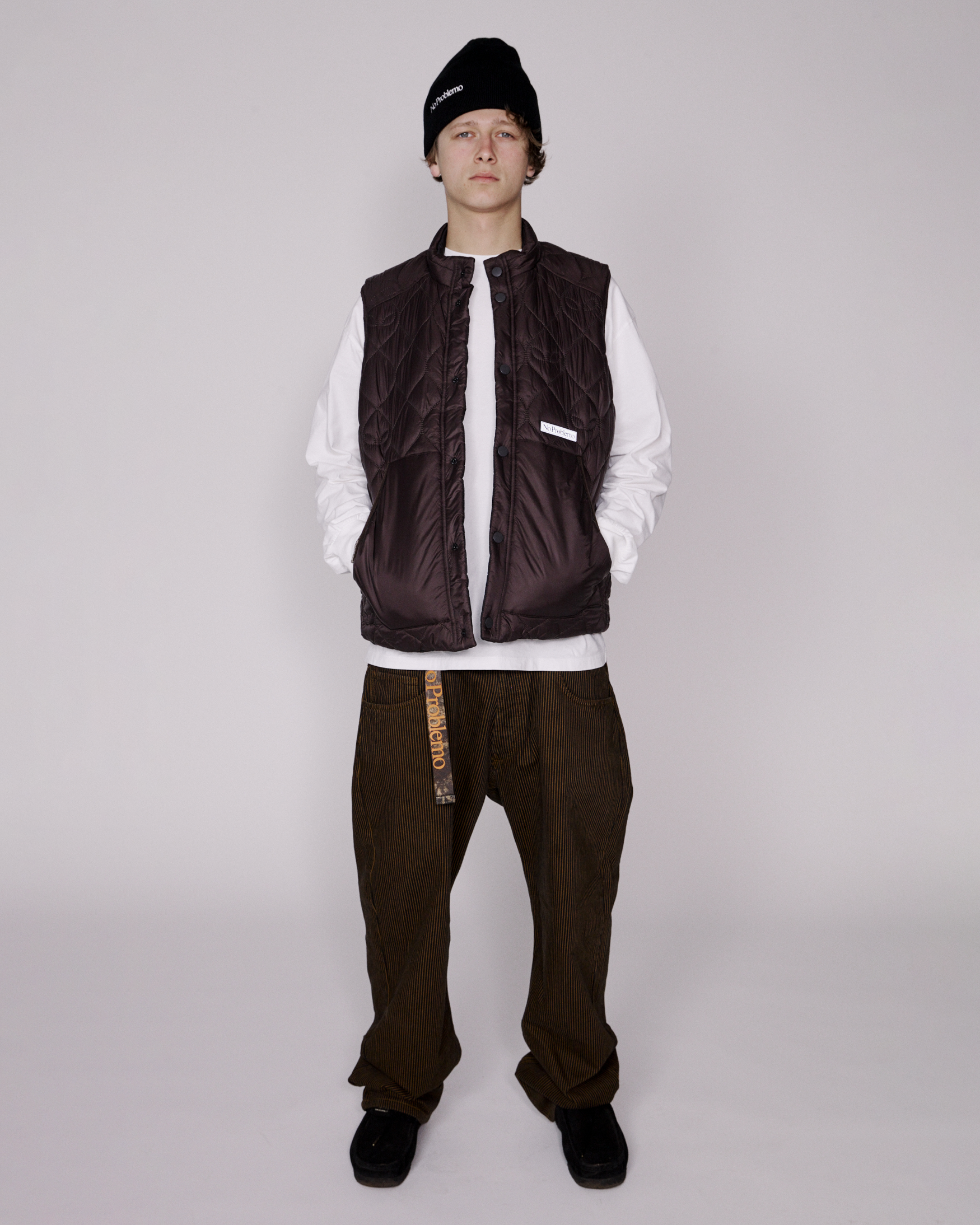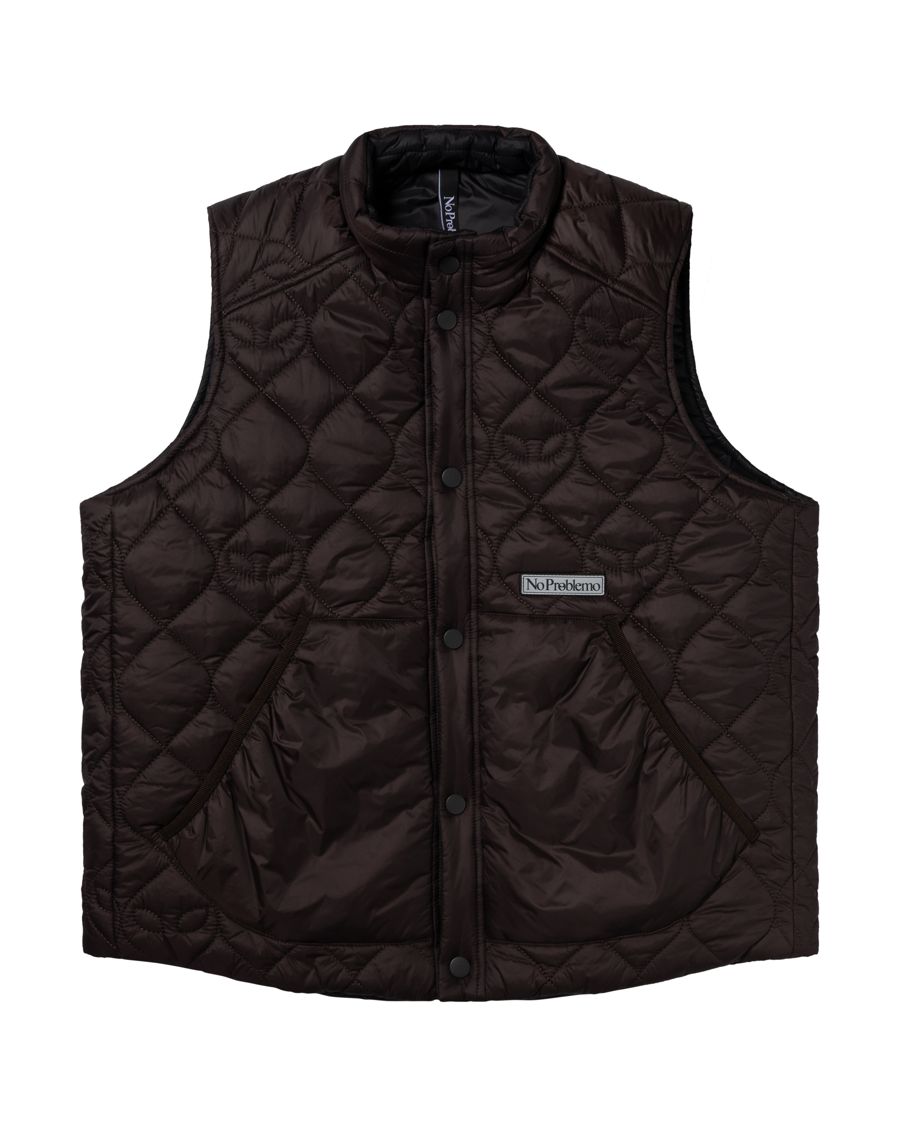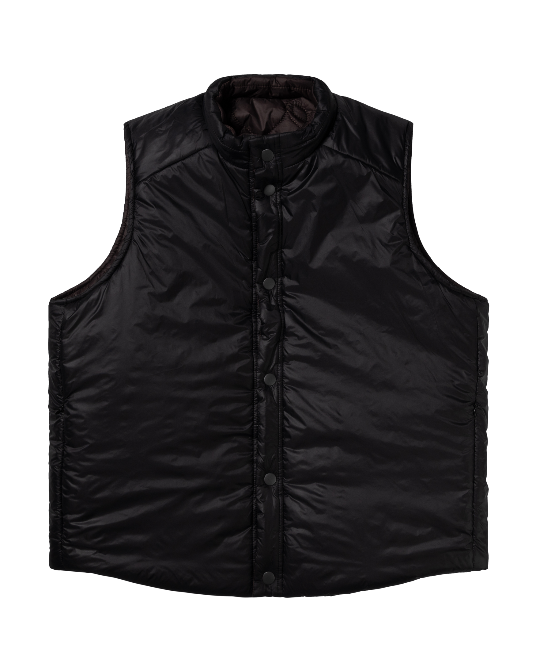 unisex liner vest with padded alien-o stitch detailing, fully reversible with brown on one side and black on the reverse.