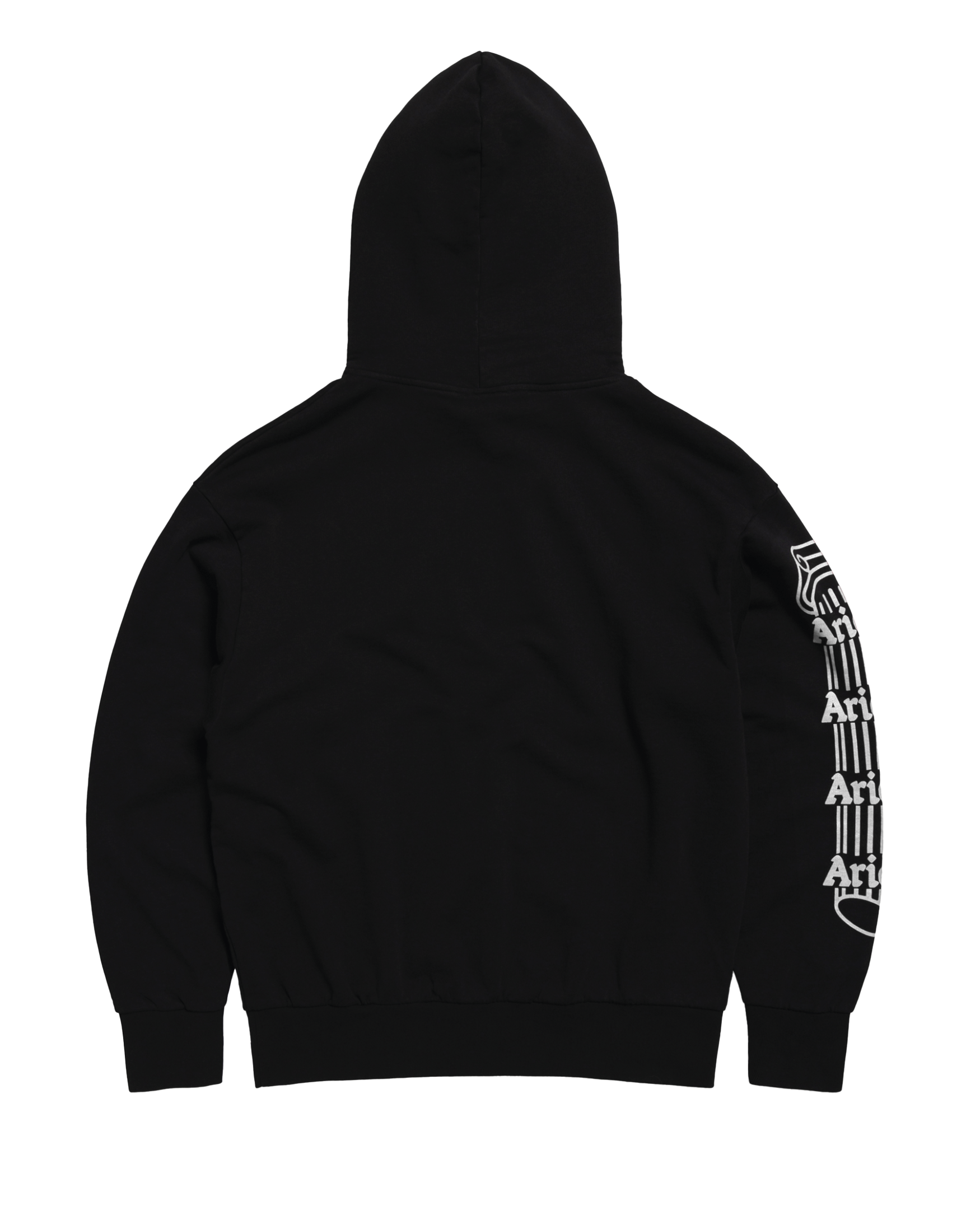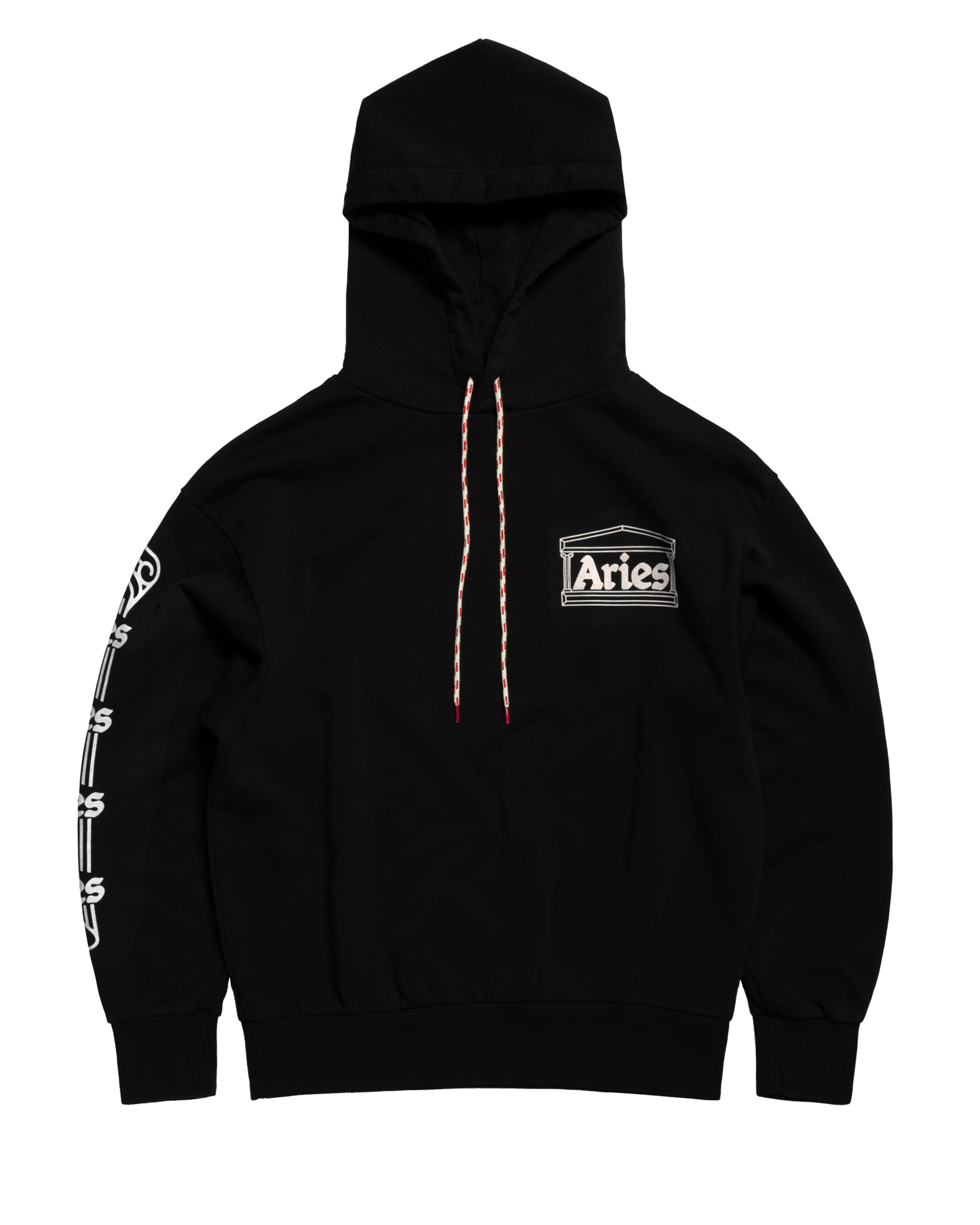 Unisex hooded sweatshirt made from brushed-back jersey fleece. With a screen-printed Aries Temple on the chest and column graphic on one sleeve. 100% cotton.
