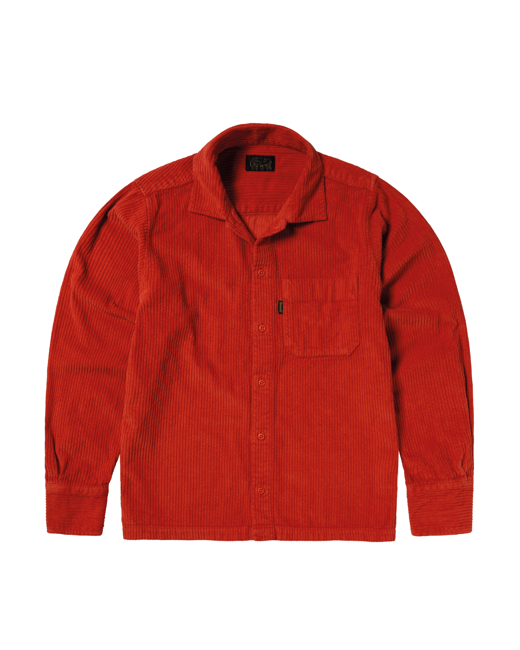 Unisex long sleeved uniform-style shirt in a plush corduroy fabric. 100% cotton.