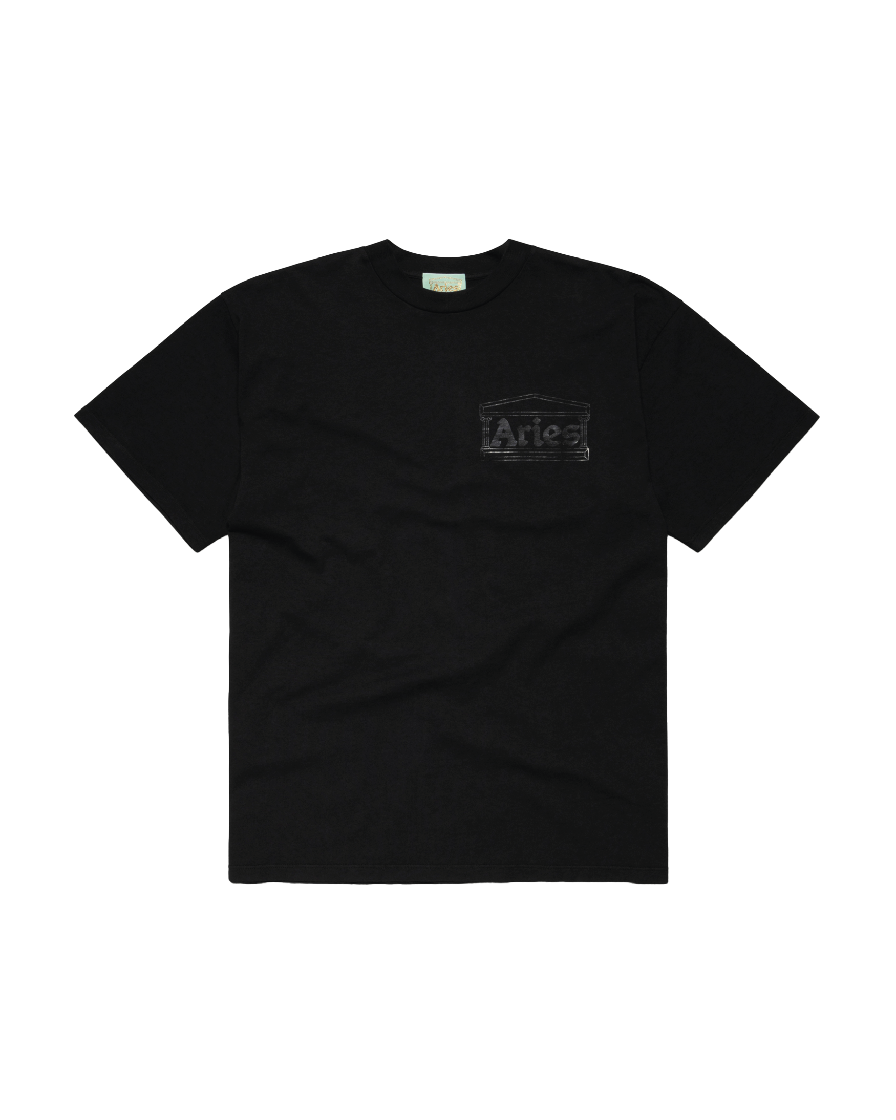 Unisex short sleeve t-shirt made from 100% cotton, mid-weight jersey. With a classic Aries temple logo screen print on the front chest.