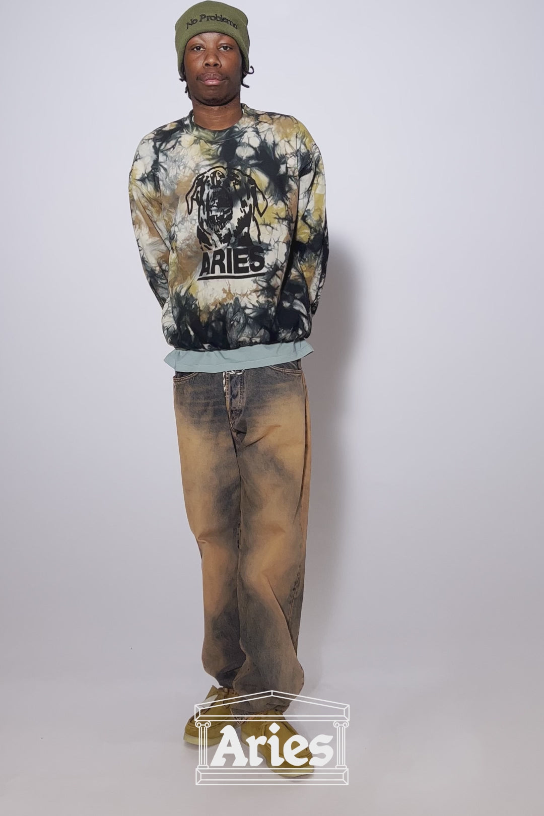 Unisex crew-neck sweatshirt made from brushed-back jersey fleece. With a screen-printed archive Rottweiler graphic on the chest. Finished with a tie-dye treatment. 100% cotton. Made in Italy.