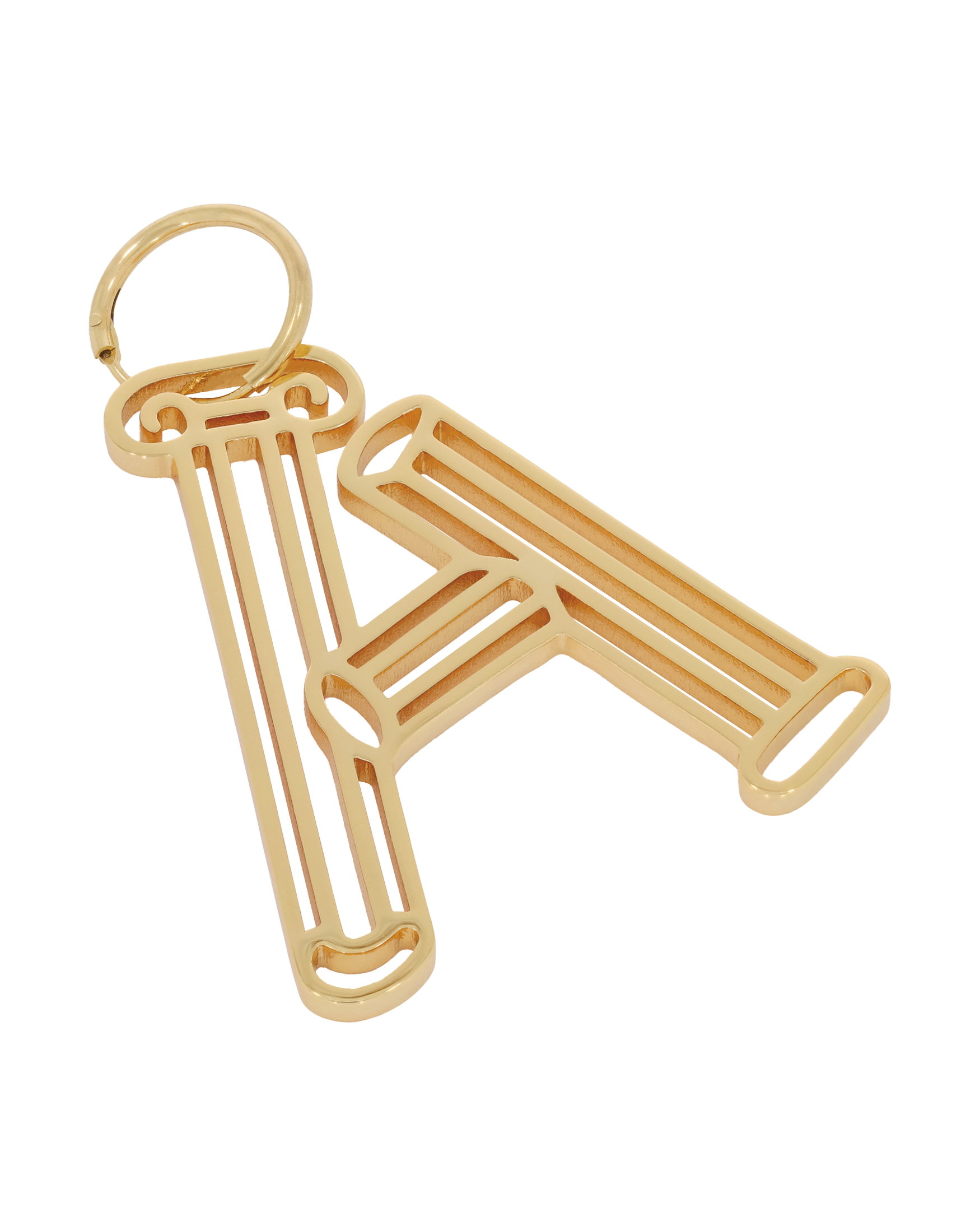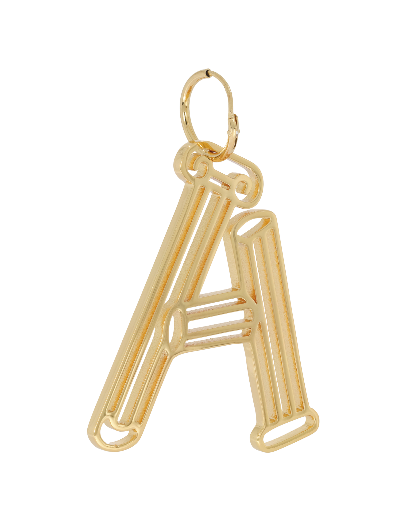 Single hoop earring with Broken Column A and Aries branded mini column charms. Gold plated brass.