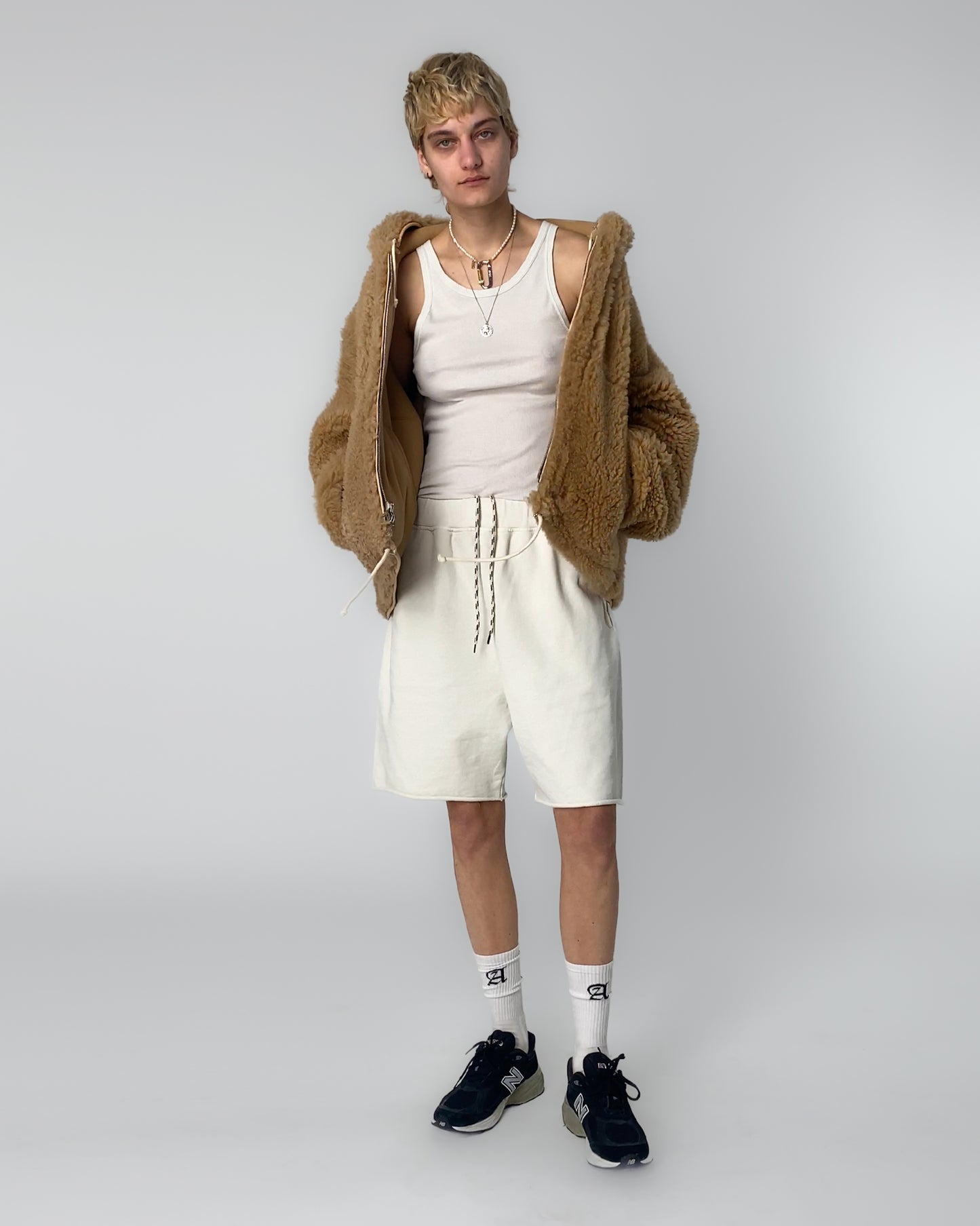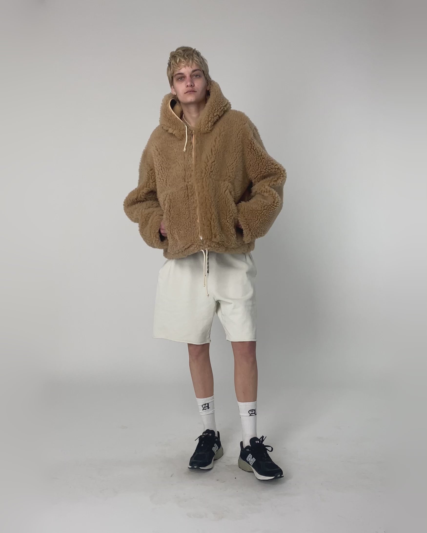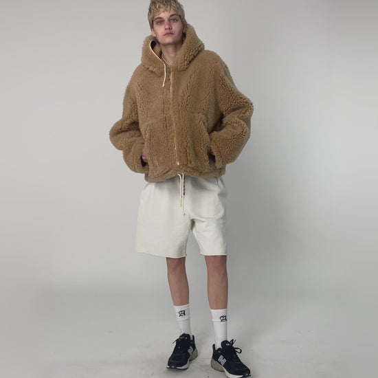 Oversized reversible teddy-fur sheepskin jacket with metal hardware. Made using premium bi-product sheepskin.