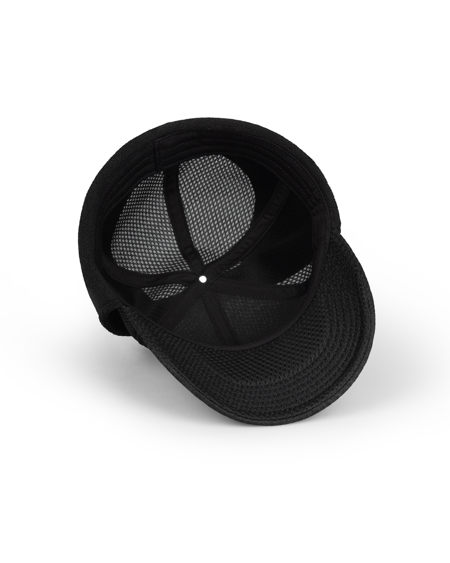 Airtex Trapper hat with high build Gothic A embroidery on front, and Aries embroidery on back. With an adjustable cord at the back.