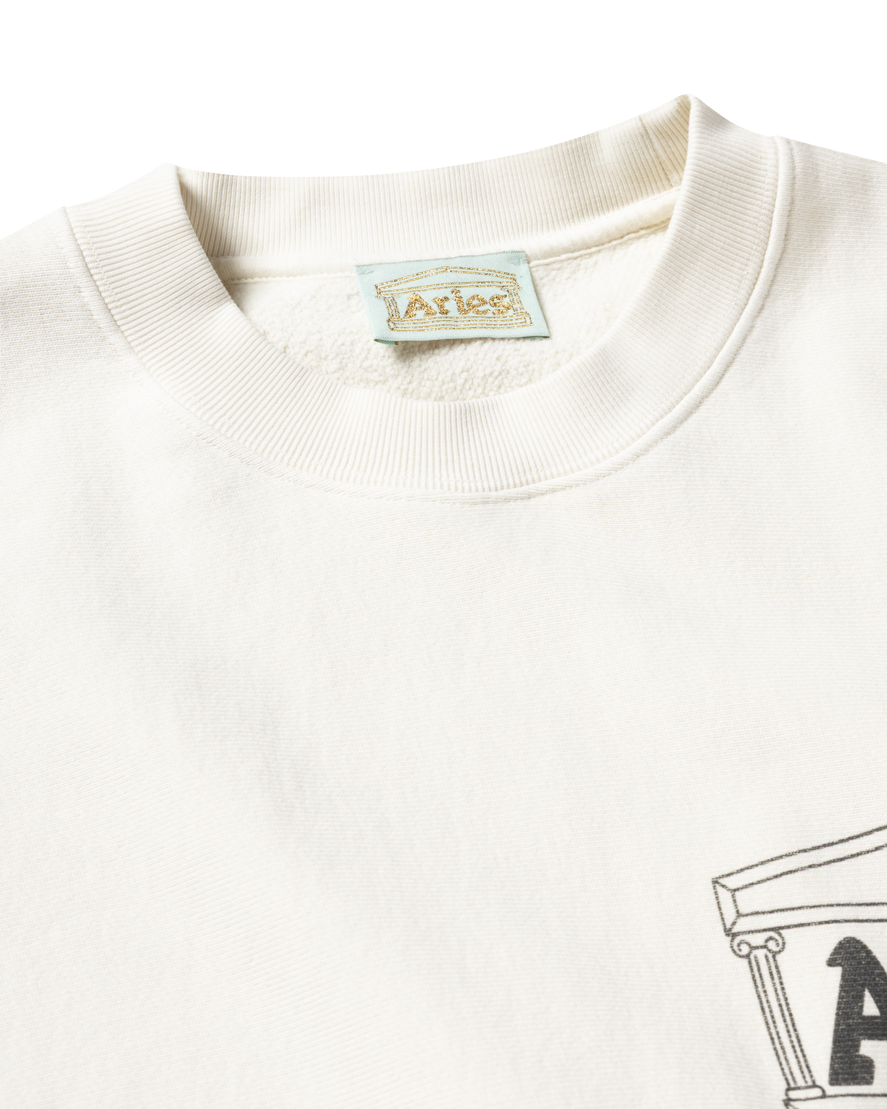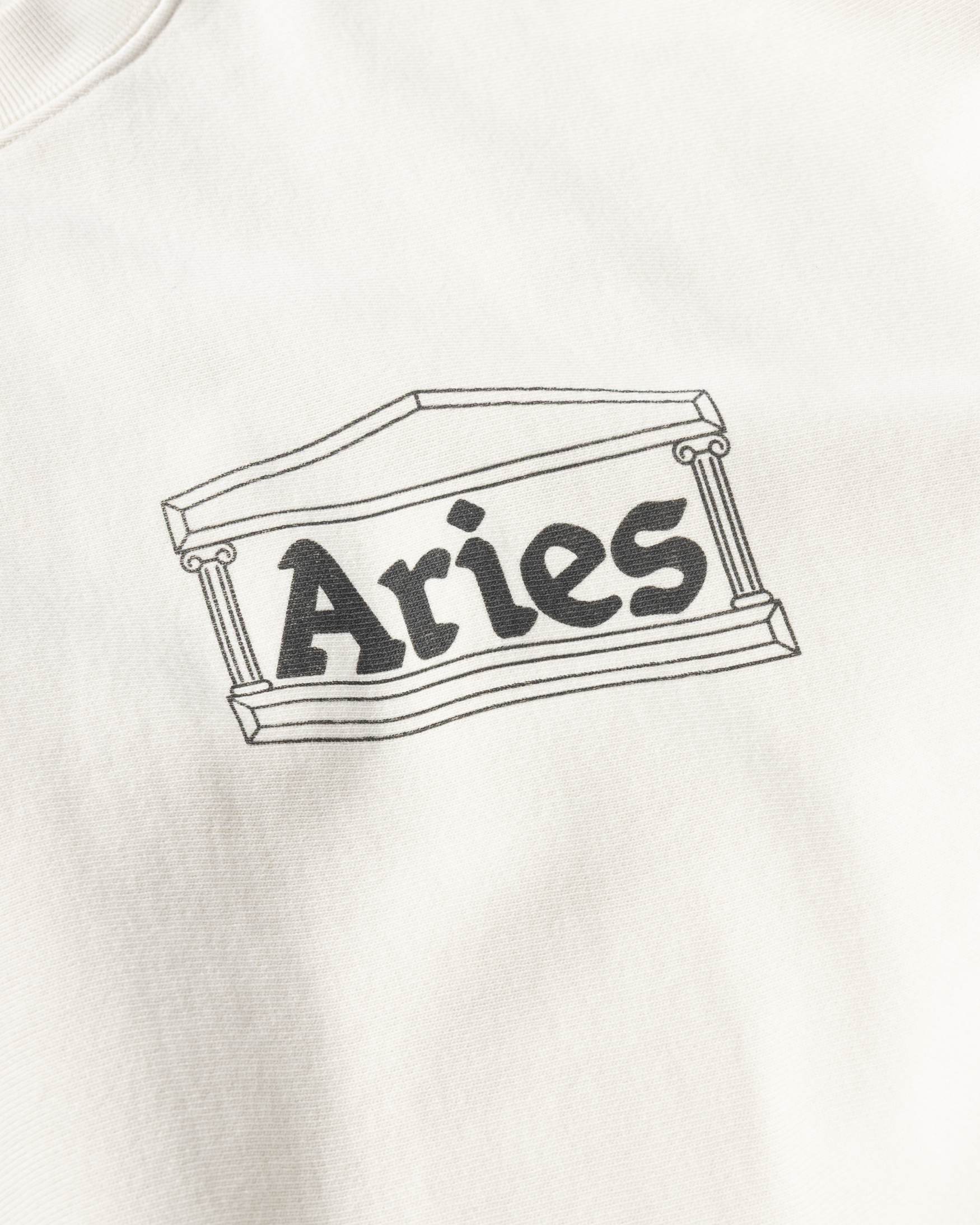 Crew neck sweatshirt, made in heavy brushed-back cotton jersey fleece, cut on the cross grain with rib panel detailing on both sides. Featuring Aries Classic Temple screen print on the chest, finished with a heavy wash treatment for an aged look. 100% cotton.