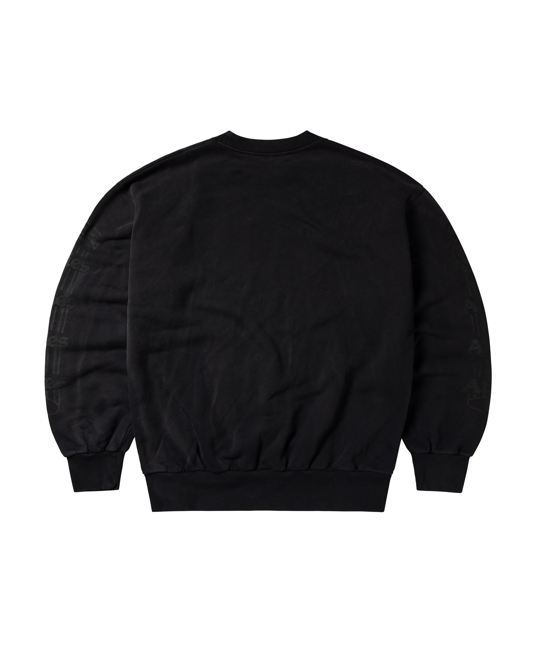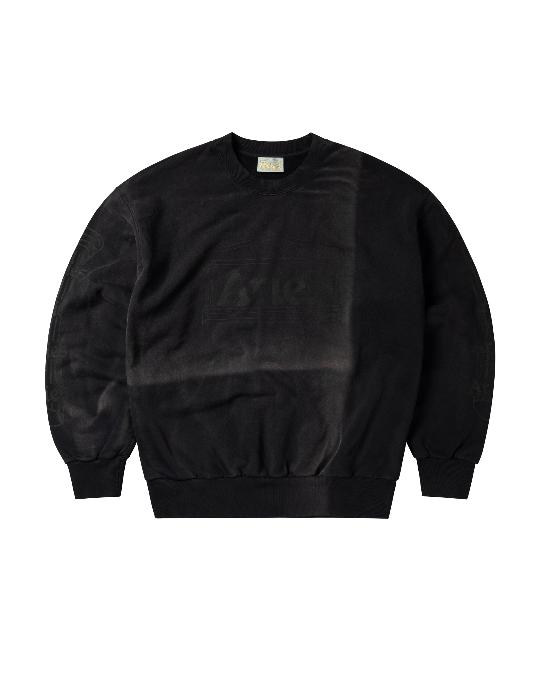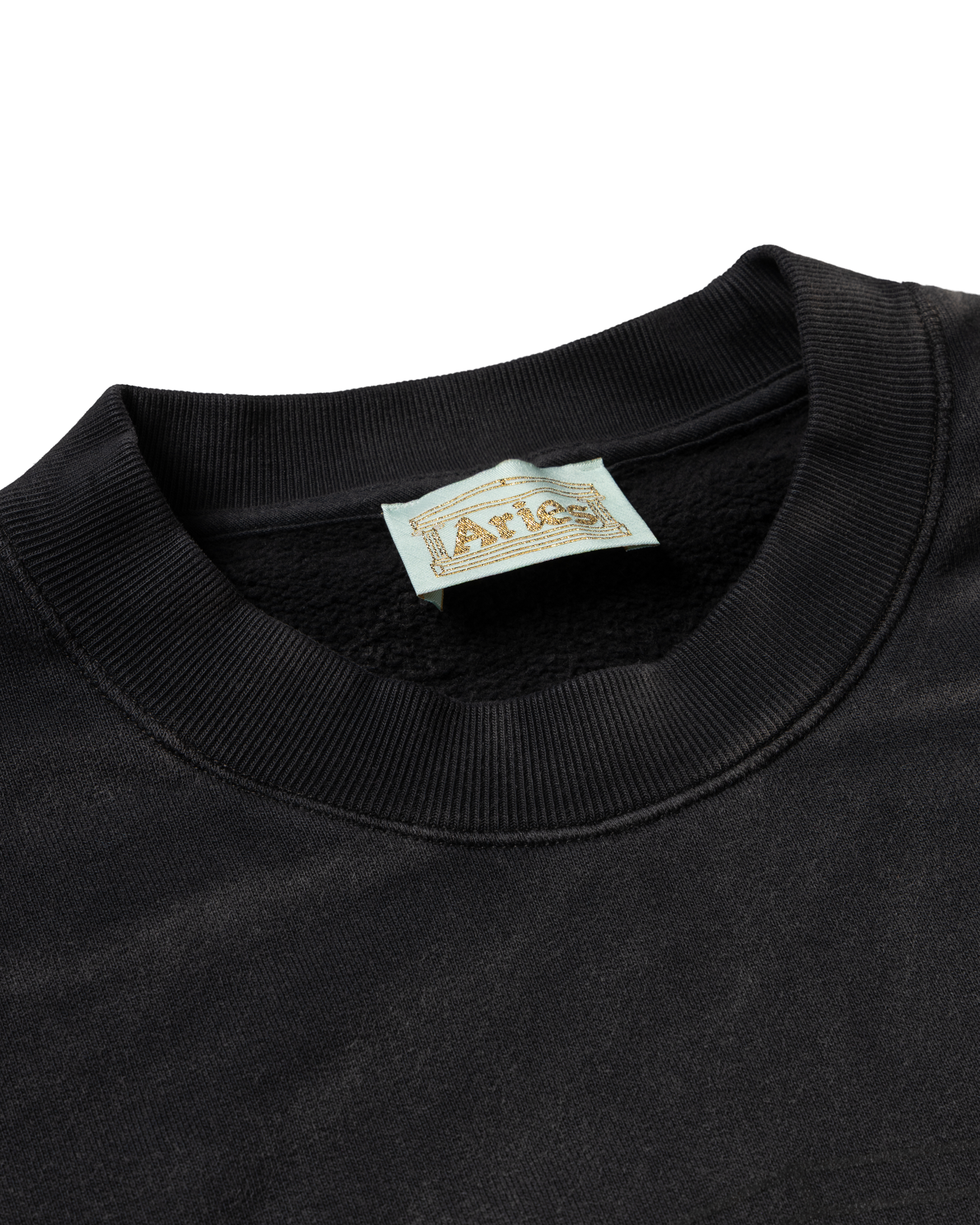 Unisex sweatshirt made from brushed-back 100% cotton jersey fleece. Featuring classic Aries Temple and Column graphics screen printed on the front and sleeves. Finished with a folded sun-bleached treatment for a heavy aged look.