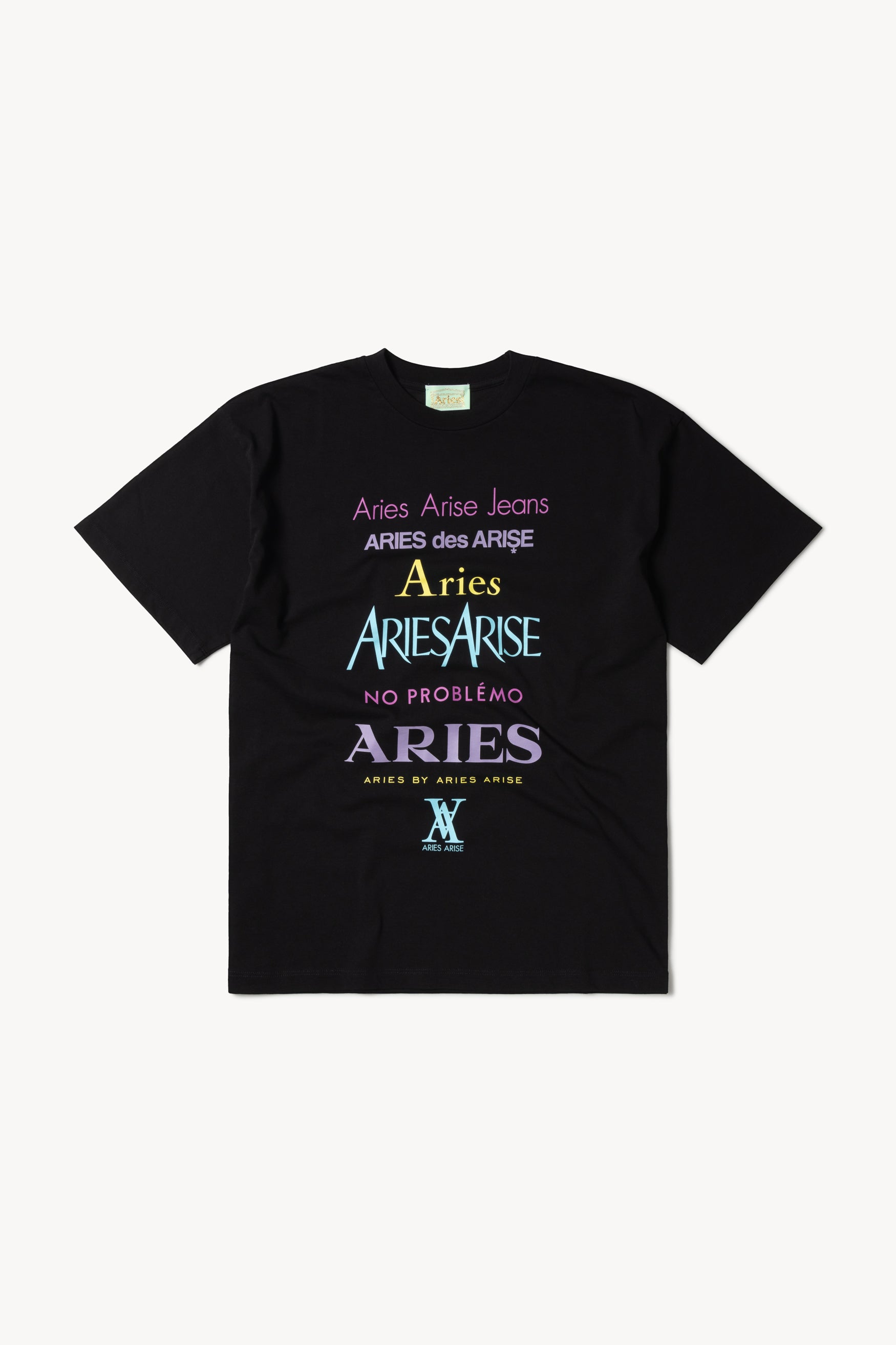 Aries unisex short sleeve T-shirt in super fine Italian jersey with some of our favourite Perfume logos printed on the front.